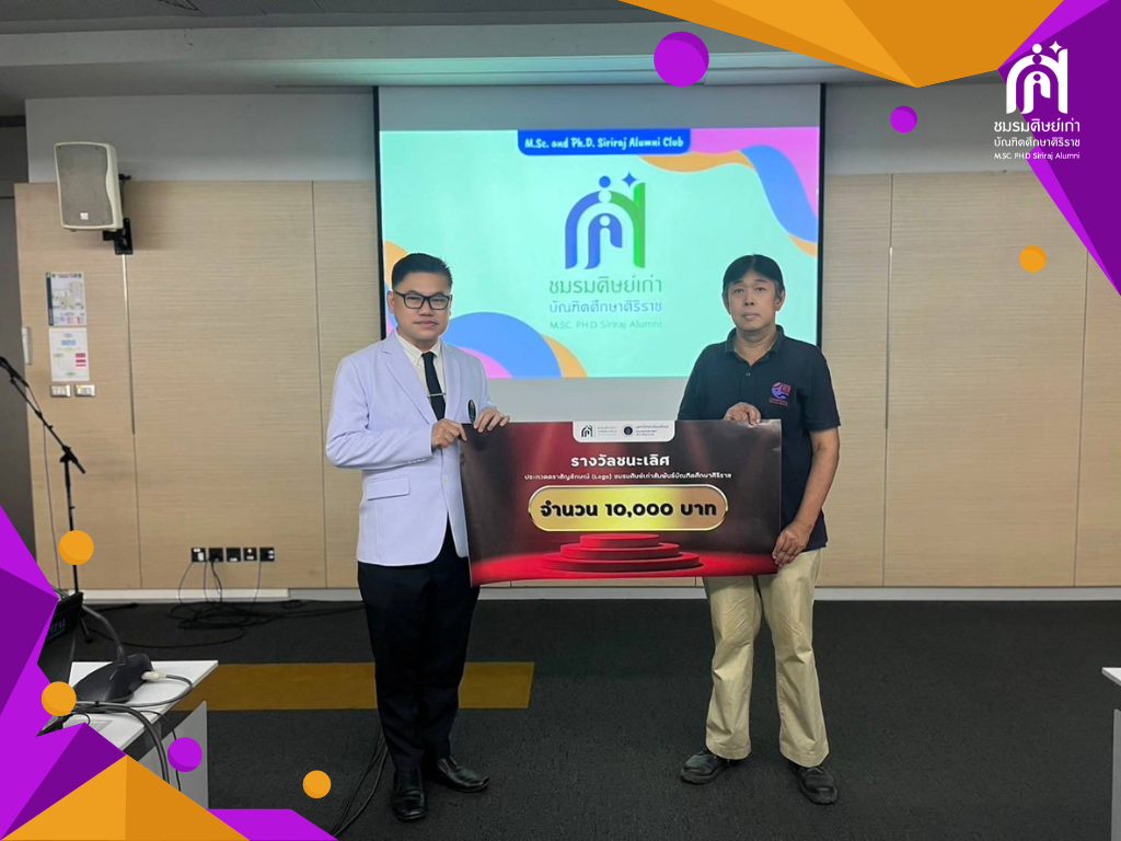 เมื่อวันที่ 21 มีนาคม 2567 ได้รับเกียรติจาก รศ. ดร. นพ. ถาวรชัย ลิ้มจินดาพร รองคณบดีฝ่ายการศึกษาหลังปริญญา และ รศ.ดร.พญ.สุวัฒณี คุปติวุฒิ ผู้ช่วยคณบดีฝ่ายการศึกษาหลังปริญญา มอบประกาศนียบัตรและป้ายเงินรางวัลแก่ผู้ชนะเลิศโครงการประกวดตราสัญลักษณ์ (Logo) ชมรมศิษย์เก่าสัมพันธ์บัณฑิตศึกษาศิริราช ให้แก่คุณบำรุง อิศรกุล ซึ่งเป็นผู้ชนะเลิศในโครงการดังกล่าว