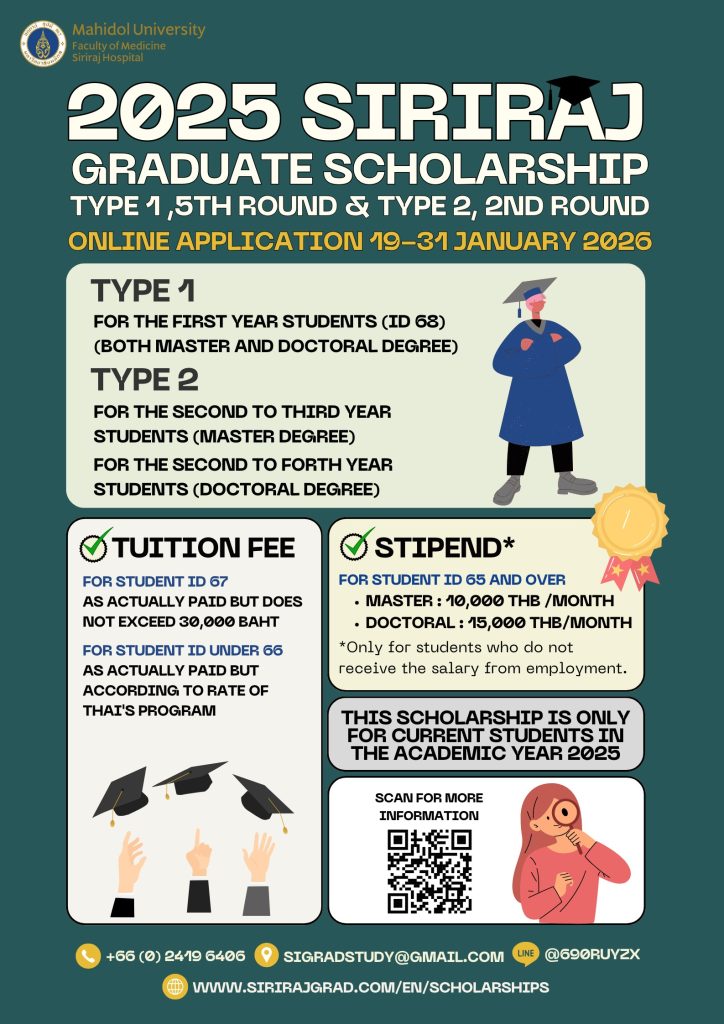 Siriraj Graduate Scholarship 2026 (Type I) 1st Round
