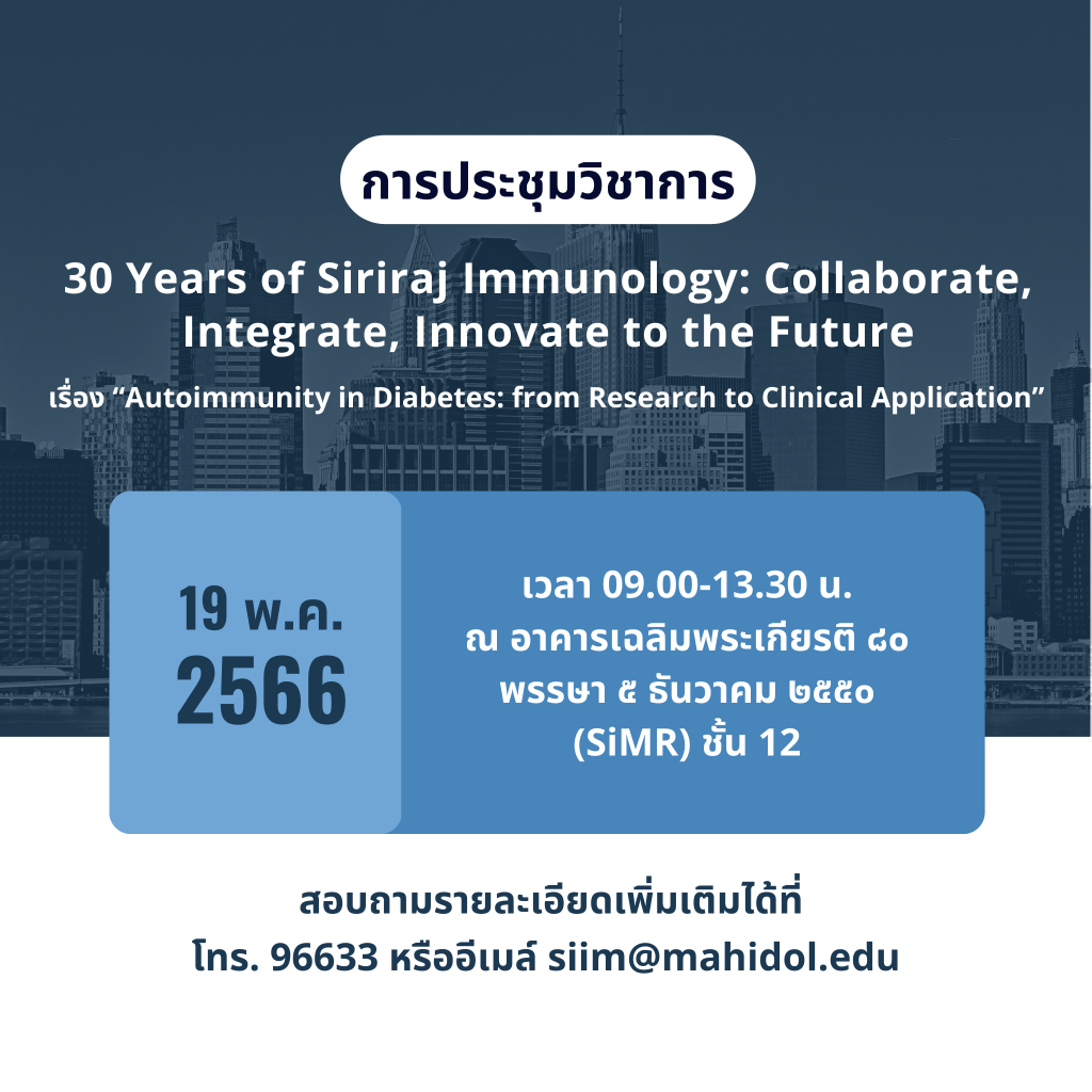 งานประชุมวิชาการ 30 Years of Siriraj Immunology: Collaborate, Integrate, Innovate to the Future เรื่อง “Autoimmunity in Diabetes: from Research to Clinical Application”