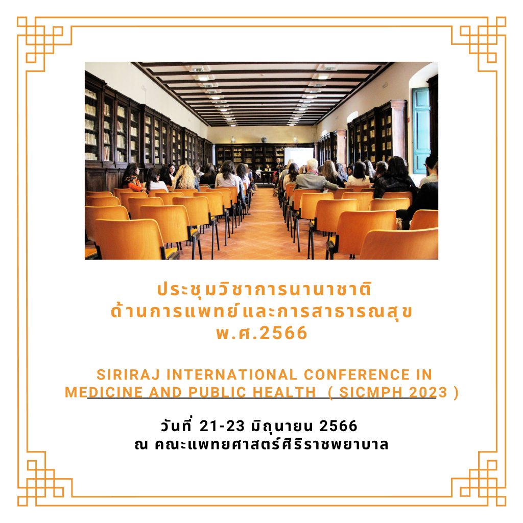 ประชุมวิชาการนานาชาติด้านการแพทย์และการสาธารณสุข พ.ศ.2566 หรือ Siriraj International Conference in Medicine and Public Health (SICMPH 2023) ภายใต้ theme: Information Innovation Integration ระหว่างวันที่ 21-23 มิถุนายน 2566 ณ คณะแพทยศาสตร์ศิริราชพยาบาล โดยมีวัตถุประสงค์เพื่อส่งเสริมและสนับสนุนให้มีเวทีของการแลกเปลี่ยนองค์ความรู้แบบข้ามศาสตร์ และเผยแพร่องค์ความรู้ที่ทันสมัยทั้งแก่บุคลากรทางการแพทย์และการสาธารณสุข