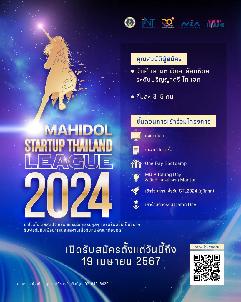 สำนักงานการวิจัยแห่งชาติ (วช.) ขอเชิญนิสิต นักศึกษา ระดับปริญญาตรี และระดับบัณฑิตศึกษาที่อยู่ระหว่างการศึกษา ส่งผลงงานนวัตกรรมเข้าร่วมในกิจกรรมการประกวดผลงานนวัตกรรมสายอุดมศึกษา ประจำปี 2567 ในระหว่างงาน “มหกรรมงานวิจัยแห่งชาติ 2567 (Thailand Research Expo 2024)” ระหว่างวันที่ 26 – 30 สิงหาคม 2567 ณ โรงแรมเซ็นทาราแกรนด์และบางกอกคอนเวนชันเซ็นเตอร์ เซ็นทรัลเวิลด์ กรุงเทพฯ ได้ตั้งแต่บัดนี้เป็นต้นไป จนถึงวันที่ 29 เมษายน 2567