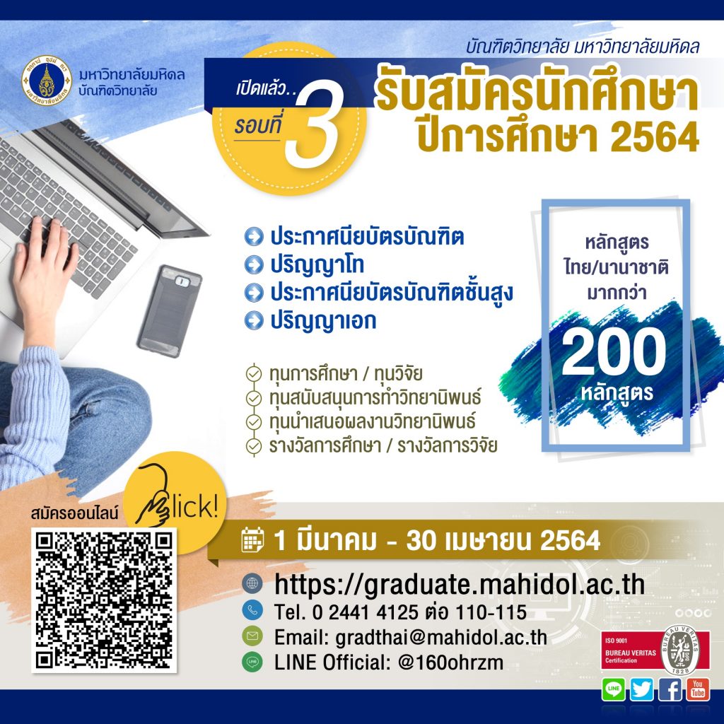 Mahidol University postponed the Graduation Ceremony for Academic Year 2020 because the COVID-19 situation is getting worse. We will keep you posted regarding the ceremony details when the situation gets better.