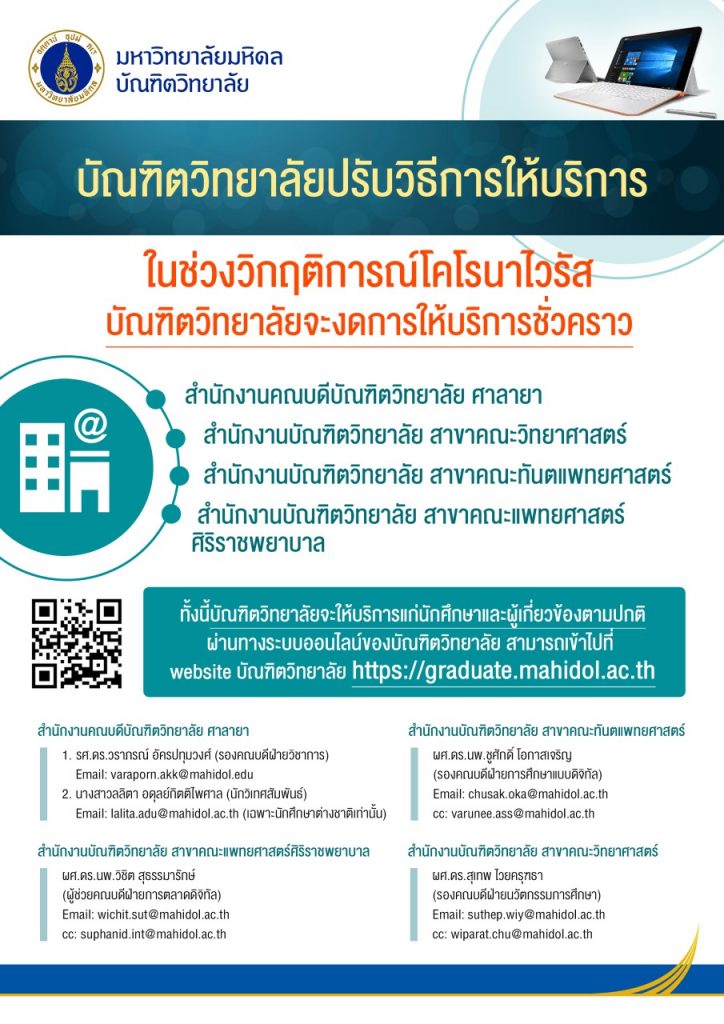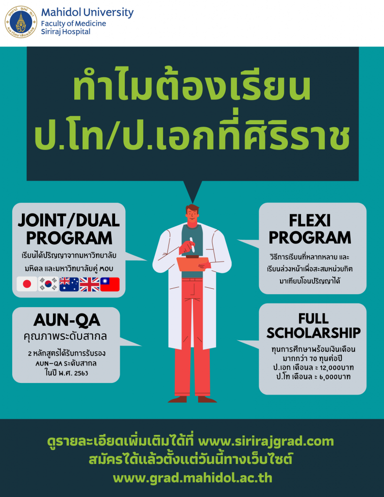 For more information, please contact Mahidol Office of Student Affairs. Tel. (+662) 849-4501-28