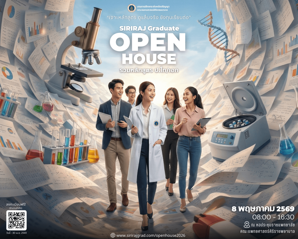 SIRIRAJ Graduate Open House 2026 งานเดียวที่รวมทุกคำตอบของคนอยากเรียนต่อศิริราช! งานนี้เราเปิดบ้านให้คุณเข้ามาสัมผัสบรรยากาศจริงแบบ Exclusive สุดๆ